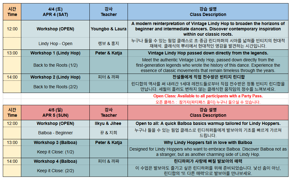 Also, due to popular demand from many dancers, we are opening a Balboa competition this year. Don’t miss your chance to win the inaugural title of the most prestigious competition in Korea.