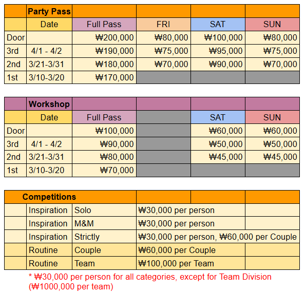 Also, due to popular demand from many dancers, we are opening a Balboa competition this year. Don’t miss your chance to win the inaugural title of the most prestigious competition in Korea.